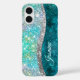 Cute iridescent turquoise faux glitter monogram Case-Mate iPhone case