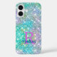 Cute iridescent unicorn blue faux glitter monogram Case-Mate iPhone case