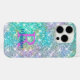 Elegant girly iridescent glitter unique iphone case. This case displays an iridescent holographic, faux glitter pattern in soft mint and purple tones, creating a luxurious, girly effect. The iridescent sheen adds a chic, light-catching quality that’s perfect for those who love a touch of sparkle.