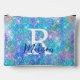 Cute iridescent unicorn blue pink glitter monogram accessory pouch