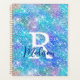 Make back to school fun with this Cute personalised Notebook. It is designed with elegant girly iridescent glitter in unicorn rainbow blue turquoise and green colours on both sides.