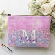 Cute iridescent unicorn ombre glitter monogram accessory pouch