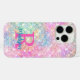 Cute iridescent unicorn pink faux glitter monogram Case-Mate iPhone case