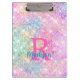Cute iridescent unicorn pink faux glitter monogram clipboard