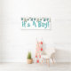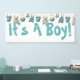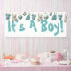 Nouvelles Décorations Garçon Bébé. Bienvenue à la maison le couple heureux avec cette adorable bannière C'est un garçon. Couleurs bleu et blanc. Ours en peluche adorable et vêtements accrochés sur une ligne.