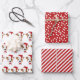NewParkLane - Whimsical Christmas wrapping paper sheets, one with a cute Jack Russell wearing a Santa hat pattern, one with fun red and white stripes and one with white polkadots on a red background.