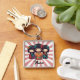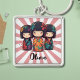 This personalized keychain features 3 cute colourful Japanese kokeshi dolls.