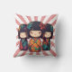 Cute Japanese Kokeshi Dolls Throw Pillow