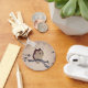A reproduction of an old Japanese woodblock print of a cute "smiling" owl sitting on a branch. The vintage image has been carefully selected, colour corrected, spot cleaned, retouched, cropped and prepared for printing at the highest quality.