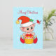 Cute Jolly Christmas elf and cardinal bird on light blue background Christmas card. Modern cute Christmas cards!