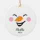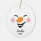 Cute, jolly snowman face personalized name, year ceramic ornament