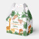 Cute jungle animal party safari birthday favour gift box. Nice for toddler party with monkeys, giraffe, tiger and leopard, tropical forest leaves.