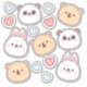 Panda, white bunny and bear with cute smiles and hearts in pastel colours.