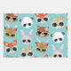 Cute Kawaii Animals Sunglasses in Blue Wrapping Paper Sheet