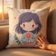 Cute Kawaii "Be Kind" Illustration Throw Pillow