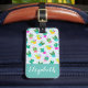 Trendy and adorable cartoon cute cactus and succulents patterned luggage tag with custom name.