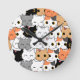 Cute Kawaii Cat Faces Pattern Round Clock