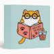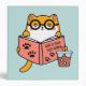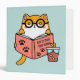 Illustration of cute Kawaii cat reading a book with the title "How to train your human" and drinking coffee