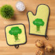 Cute kawaii dancing broccoli cartoon illustration oven mitt & pot holder set