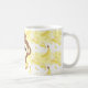 A very cute and kawaii monkey holding a banana, the background in yellow tones and banana pattern. On a mug