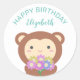 Cute Kawaii Monkey With Flowers Happy Birthday Classic Round Sticker