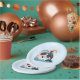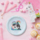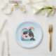 These paper plates feature a charming design with a sky blue and white background adorned with twinkling stars. Taking centre stage is an adorable kawaii orca killer whale gracefully emerging from the water. Its playful expression and endearing charm will bring smiles to the faces of your guests.