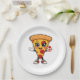 Bright colors and a happy cartoon style make these paper plates great for kids and pizza lovers.