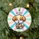 Cute Kawaii Puppy Dog with Bubble Tea Personalized Ceramic Ornament