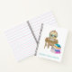 Cute personalized notebook featuring an adorable sloth wearing glasses sitting at a school desk solving a math problem and a pile of books.