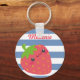 Adorable strawberry on cute striped personalised keychain.
