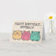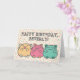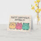 Create an adorable personalized card for birthdays or any occasion. The message on the front and the inside of this greeting card is ready for your custom touch. This card features cute Kawaii style cartoon hamsters in yellow, pink and green set against a festive polka dot background.