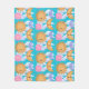Cute Kawaii Sun Moon Cloud Gold Blue Pink Fleece Blanket