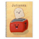 For a happy breakfast! Featuring a cute slice of toast jumping out of a red toaster in adorable cartoon style!