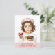 Cute kid with heart-shaped velvet cake chocolates postcard