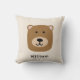 Cute brown bear kids baby throw pillow - personalize with your own name or choice of text to the front, bear head pattern to reverse. Matching items available. Original art from artists own illustrations. Please use the message me button below for help with further customization and special requests. © Zoe Chapman Design