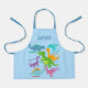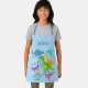 A lovely colourful Child's Apron with cute cartoon dinosaurs and their names in a fun bright font. Dinosaurs - Tyrannosaurus Rex ( T-Rex), Pteranodon, Brontosaurus, Ankylosaurus, Plesiosaurus, Velociraptor, and a Stegosaurus. Would make the perfect gift for for those who love dinosaurs. Personalize with a name to be a unique birthday or christmas gift item.