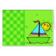 These adorable customized greeting cards for kids can be used for a variety of occasions. Kids will love this cartoon sailboat with a smiling sun on a green chequered background.