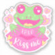 Add a splash of kawaii charm to your world with this adorable 'Kiss Me' Frog Sticker! Featuring a lovable frog with big lips and the sweet sentiments 'kiss me' and 'xoxo,' this sticker is the perfect way to share a touch of whimsy and romance. Whether it's Valentine's Day or any day, let this cute amphibian bring smiles and love wherever it lands. Stick it on your favourite belongings and spread the joy with this charming accessory. Order yours now!