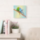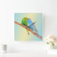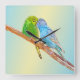 Cute kissing budgies -acrylic on pastel background square wall clock