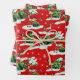 The wrapping paper features a delightful and whimsical design that evokes a sense of nostalgia and holiday cheer. Against a vibrant red background, you'll find a charming scene of cute, retro, kitschy reindeer frolicking among billowy, snowy clouds.