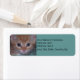 This return address label features a close up photograph of an orange tabby kitten with green eyes, lying on an afghan that matches his eyes almost exactly. He appears quite serious and intent--and he probably was. This was Mr. Cat as a kitten, and my guess is that he was trying to decide how best to attack the camera. He still does that, and he's seven years old now....