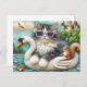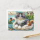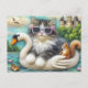 Cute Kitten and Squirrel Woollen Swan Boat Postcard