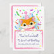 Cute Kitten Birthday Invites. Animal themed Birthday Party invitations. Pink borders.