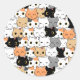 Cute kitten doodle seamless pattern Classic Round Sticker .