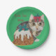 This customizable christmas plate has a picture of a cute Christmas kitten wearing a very pretty red bow with christmas holly on her head and she's looking very pleased with herself as she licks the Christmas pudding cream from her paws with her little pink tongue. Her big pussycat eyes show how much she's enjoying her special christmas treat. This cute little Christmas cat looks very festive on this paper christmas plate. This is a customizable christmas paper plate so that you can personalize it with your own text. The original art for this cute christmas kitten is a water-colour illustration.