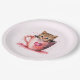 Paper plates with a cute little kitten. Sitting in a teacup looking positively adorable. One little paw hangs on the brim. Hearts swirl all around. Sweet and whimsical.