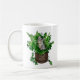 Adorable grey kitten playing in catnip in a vintage old antique planter.