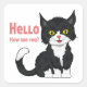 Cute Kitten Kitty Cartoon Black Cat Hello Square Sticker