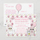 Sweet hand drawn cartoon kitty cat, mouse and llama pink cupcake and bows girl's birthday party invitations.