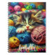 Personalized notebook. Cute kitten sleeping in colourful balls of yard calm and sweet.